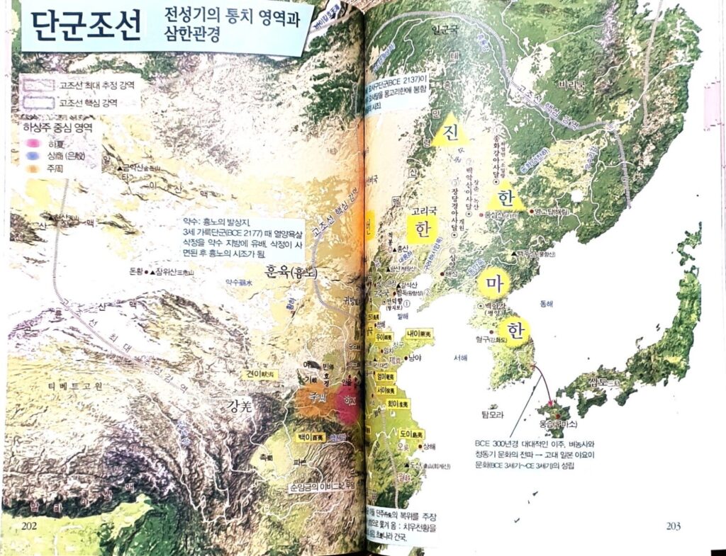 이에 탕[湯]이 사신을 보내 사죄하므로 군사를 되돌리라 명하셨다. 이때 걸이 약속을 어기고 군사를 보내어 길을 막고 맹약을 깨뜨리려 하였다. 그리하여 임금께서 마침내 은나라 사람과 함께 걸을 치는 한편, 은밀히 신지 우량[于亮]을 보내어 견군[畎軍]을 이끌고 낙랑[樂浪] 군사와 합세하여 관중의 빈[邠].기[岐] 땅을 점령하여 주둔시키고 관제[官制]를 설치하셨다.